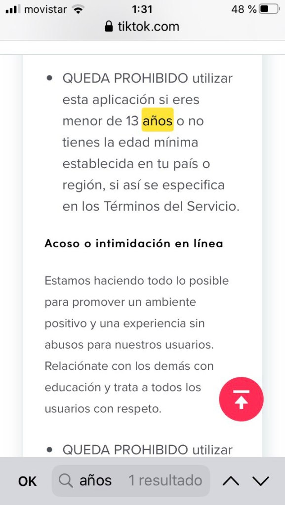 Interesante tener en cuenta que TikTok no permite el uso de su app en menores de 13 años, tengan consentimiento o no.